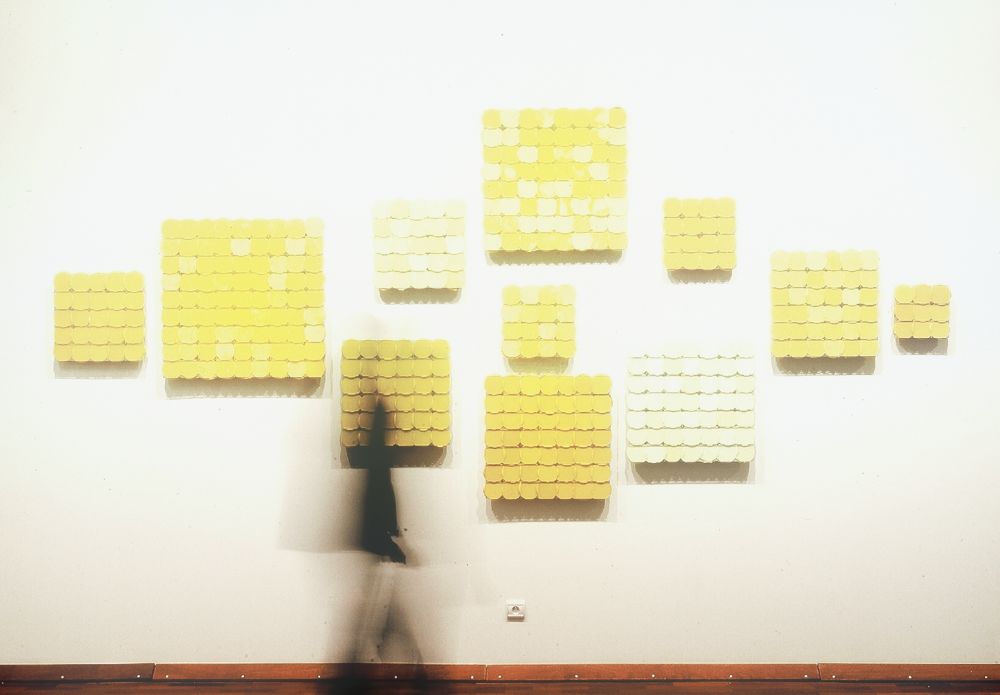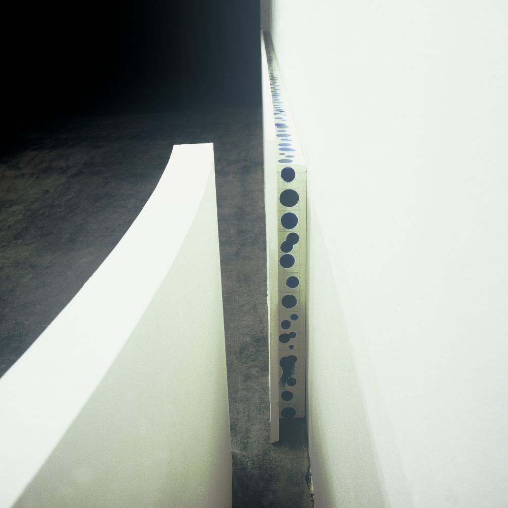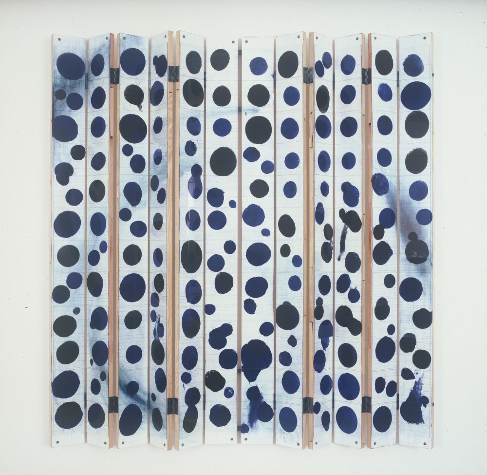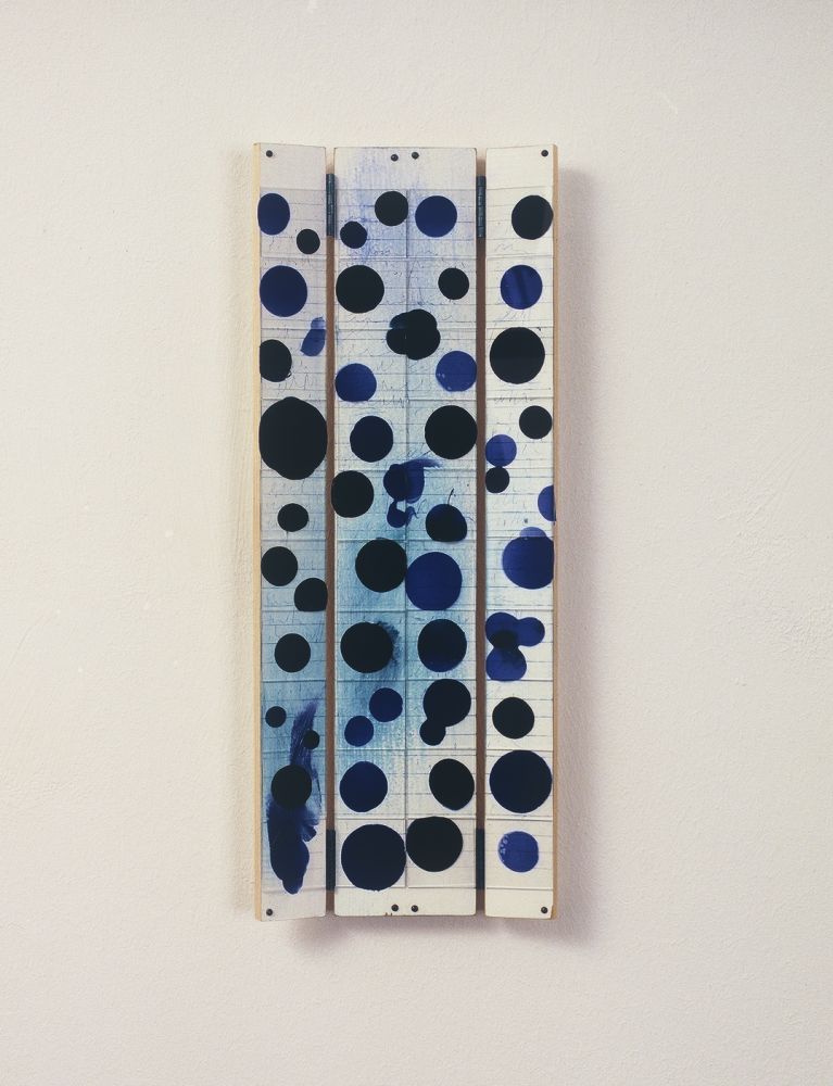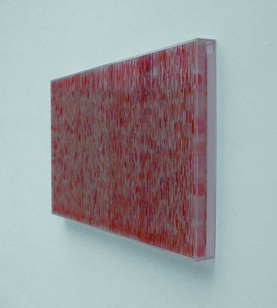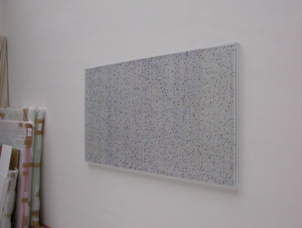 (Erstes) Blaues Glas, 1992, (Holz, Lack, Silikon, Pigment, Glas), 184 x 36 cm (Ausschnitt) (Erstes) Blaues Glas, 1992, (Holz, Lack, Silikon, Pigment, Glas), 184 x 36 cm Rundes Blaues Glas, 1992, (Holz, Lack, Silikon, Pigment, Glas), 20 x 1,80 cm Rundes Blaues Glas, 1992, (Holz, Lack, Silikon, Pigment, Glas), 20 x 1,80 cm (Innenansicht) Fleck, 1994, (Ein Hund kam in die Küche...), (Holz, Lack, Silikon, Pigment, Glas), 15 x 15 cm Souvenir IX, 1995, Nr. 4/5, Klapptäfelchen, (Holz, Lack, Silikon, Pigment, Glas), 40 x 14 cm Double, 1995, Klapptafeln, (Holz, Lack, Silikon, Pigment, Glas), 40 x 40 cm Leporello, 1994, (Holz, Lack, Silikon, Pigment, Glas), 128 x 128 cm Peripherie, 1995, Klapptafeln, (geschlossen), (Holz, Lack, Silikon, Pigment, Glas), 30 x 30 cm Peripherie, 1995, Klapptafeln, (geöffnet), (Holz, Lack, Silikon, Pigment, Glas), 30 x 90 cm Time Lapse, 1992, (geöffnet), (Holz, Lack), 130 x 100 cm Time Lapse, 1992, (geschlossen), (Holz, Lack, Silikon, Pigment, Glas),  130 x 100 cm Panorama perpetua, 1997, (Holz, Lack, Silikon, Pigment, Glas), 84 x 67 cm