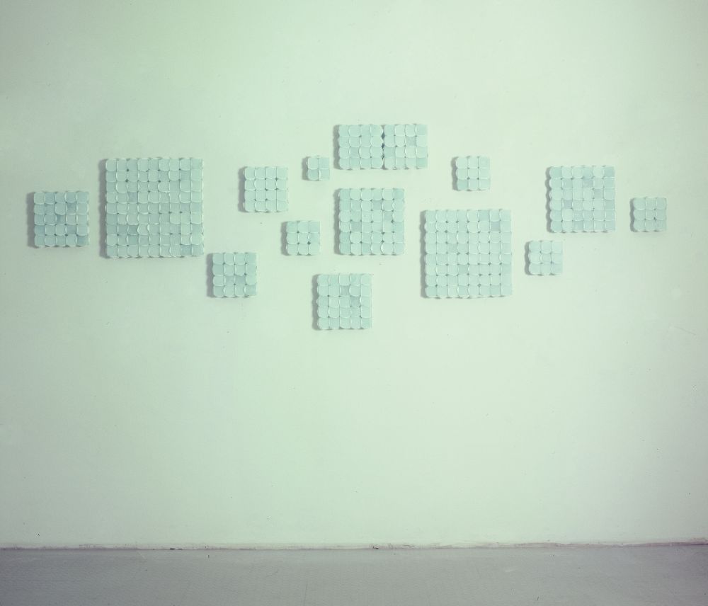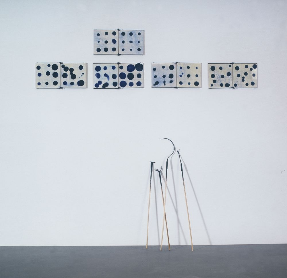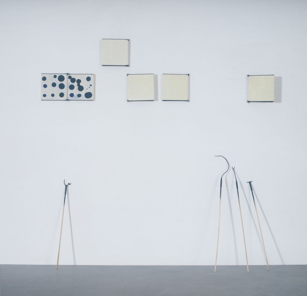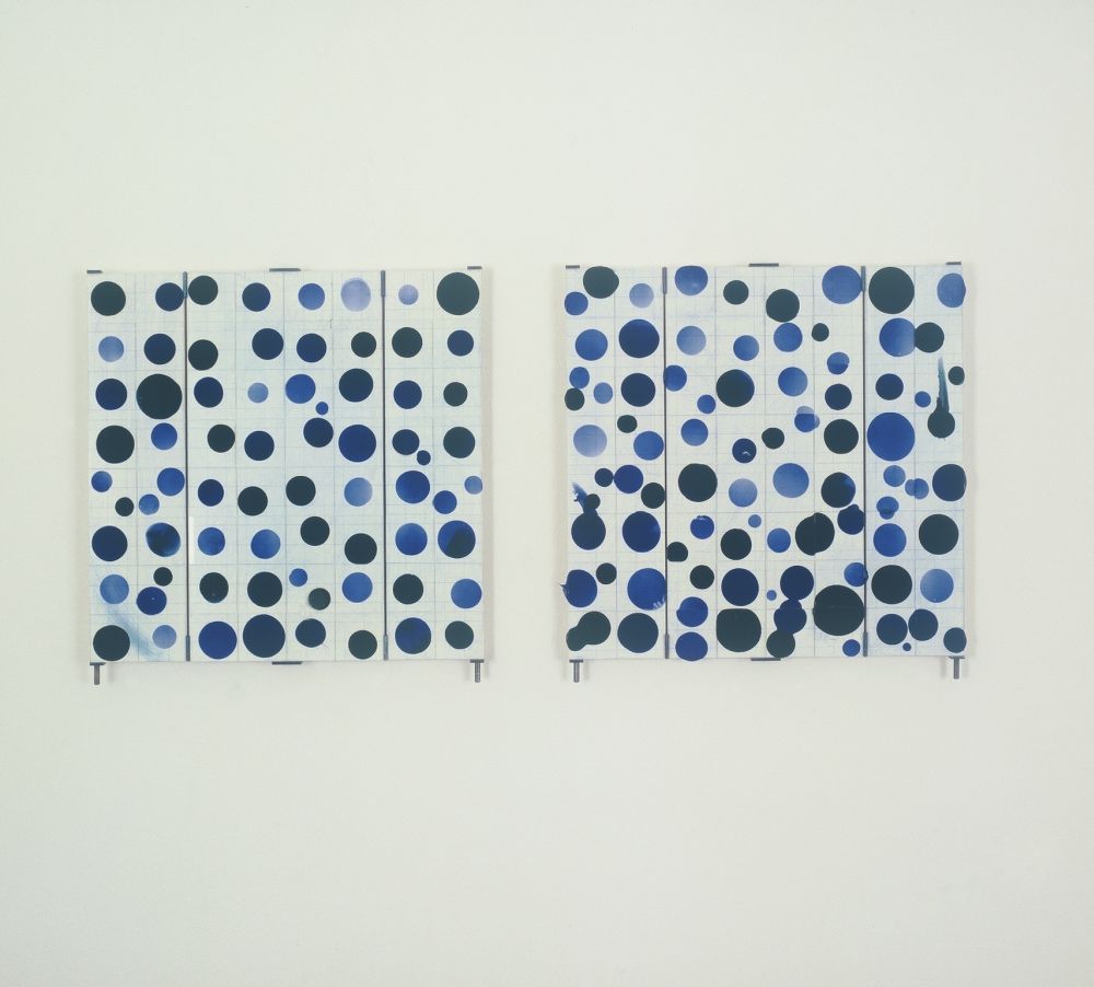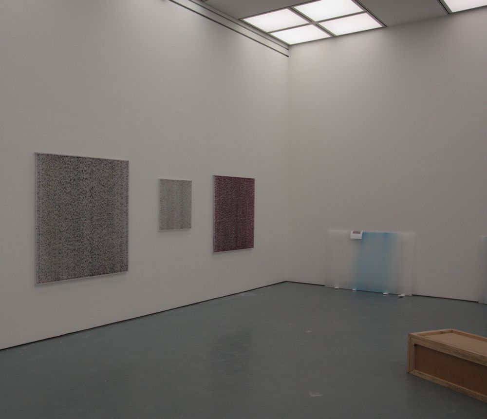 (Erstes) Blaues Glas, 1992, (Holz, Lack, Silikon, Pigment, Glas), 184 x 36 cm (Ausschnitt) (Erstes) Blaues Glas, 1992, (Holz, Lack, Silikon, Pigment, Glas), 184 x 36 cm Rundes Blaues Glas, 1992, (Holz, Lack, Silikon, Pigment, Glas), 20 x 1,80 cm Rundes Blaues Glas, 1992, (Holz, Lack, Silikon, Pigment, Glas), 20 x 1,80 cm (Innenansicht) Fleck, 1994, (Ein Hund kam in die Küche...), (Holz, Lack, Silikon, Pigment, Glas), 15 x 15 cm Souvenir IX, 1995, Nr. 4/5, Klapptäfelchen, (Holz, Lack, Silikon, Pigment, Glas), 40 x 14 cm Double, 1995, Klapptafeln, (Holz, Lack, Silikon, Pigment, Glas), 40 x 40 cm Leporello, 1994, (Holz, Lack, Silikon, Pigment, Glas), 128 x 128 cm Peripherie, 1995, Klapptafeln, (geschlossen), (Holz, Lack, Silikon, Pigment, Glas), 30 x 30 cm Peripherie, 1995, Klapptafeln, (geöffnet), (Holz, Lack, Silikon, Pigment, Glas), 30 x 90 cm Time Lapse, 1992, (geöffnet), (Holz, Lack), 130 x 100 cm Time Lapse, 1992, (geschlossen), (Holz, Lack, Silikon, Pigment, Glas),  130 x 100 cm Panorama perpetua, 1997, (Holz, Lack, Silikon, Pigment, Glas), 84 x 67 cm