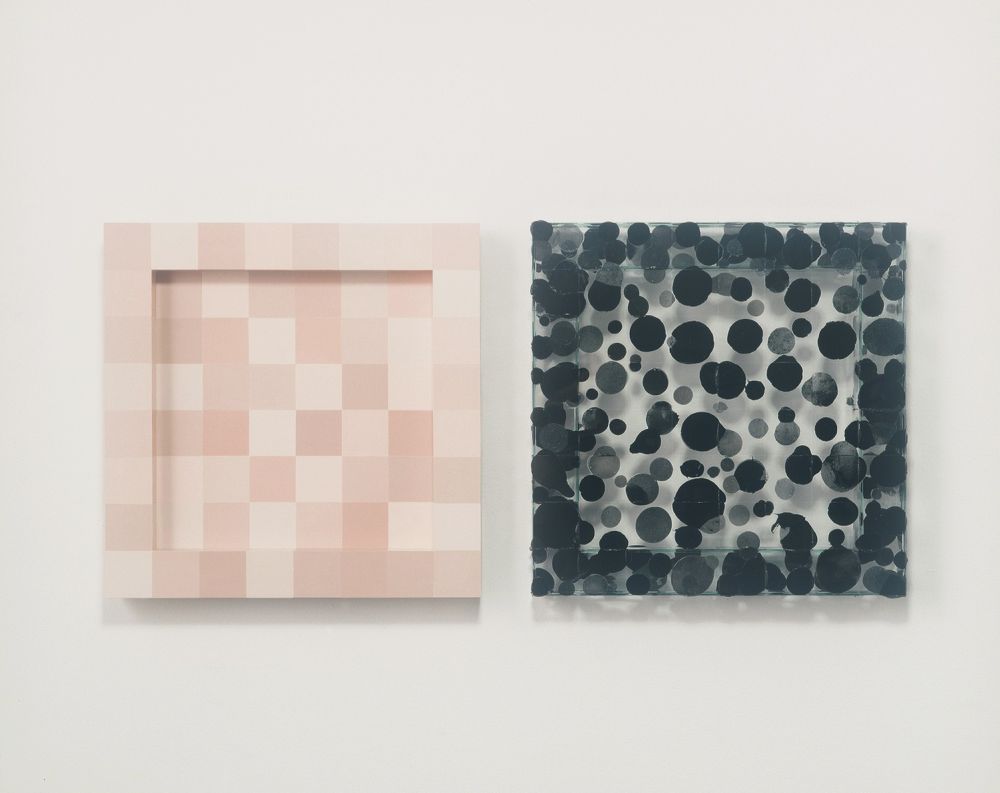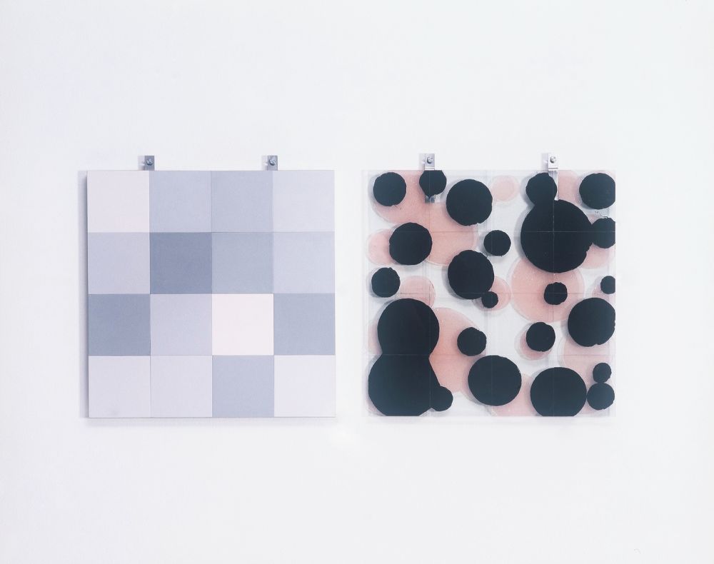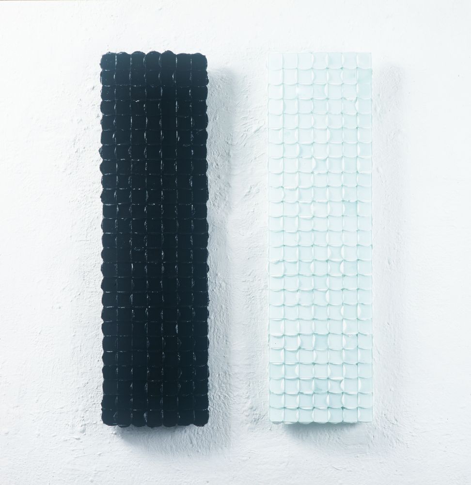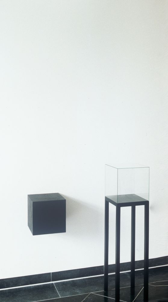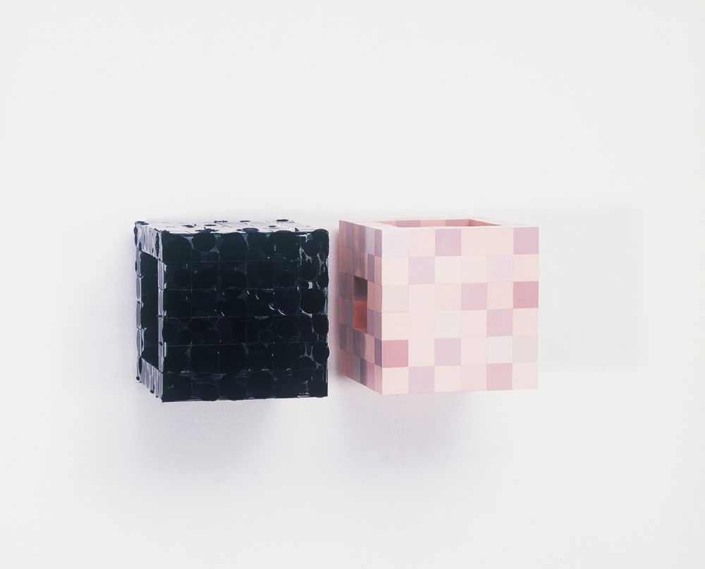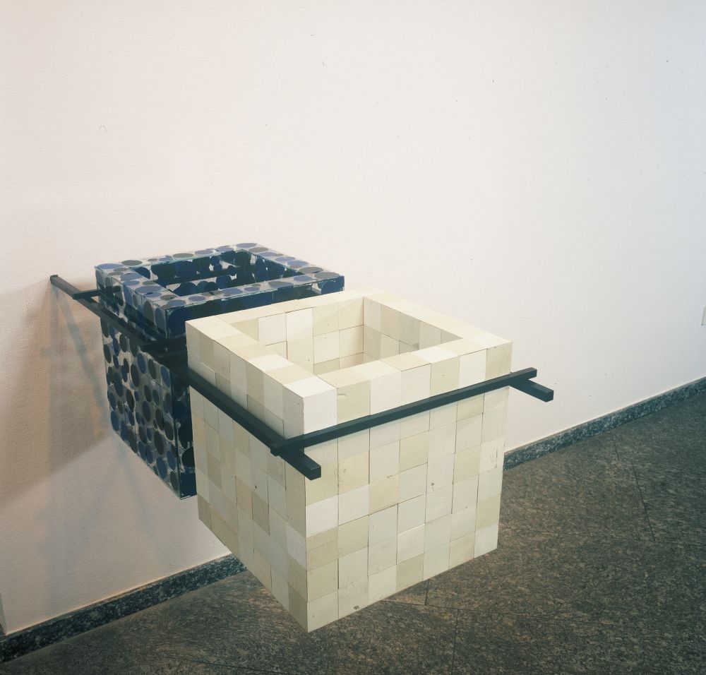 Double one, 1997, (Holz, Lack, Silikon, Pigment, Glas), 245 x 4 x 4 cm und 11 x 245 x 11 cm Simple double, 1997, (Holz, Lack, Silikon, Pigment, Glas), je 80 x 20 x 5 cm ? Platzhalter (Scan kein Originalfoto) Double skin, 1998, (Holz, Lack, Silikon, Pigment, Glas), 76 x76 cm und 28 x 28 x 28 cm Vis-a-vis, 1998, (Holz, Lack, Silikon, Pigment, Glas),  je 28 x 49 x 28 cm Side by side, 1996/97, (Holz, Lack, Silikon, Pigment, Glas), 40 x 13 x13 cm Ansprache an die Landschaft, 1996/97, (Holz, Lack, Silikon, Pigment, Glas),  je 35 x 35 x 35 cm Side by side, 1998, (Holz, Lack, Silikon, Pigment, Glas), 105 x 15 x 15 cm Double one (lines), 1998, (Holz, Lack, Silikon, Pigment, Glas), 80 x 4 x 4 cm Double box, 1998, (Holz, Lack, Silikon, Pigment, Glas), 21 x 21 x 21 cm Stranges boxes, 1998, (Holz, Lack, Silikon, Pigment, Glas), 56 x 56 x 7 cm Double side,  1998, (Holz, Lack, Silikon, Pigment, Glas), 50 x 50 x 2 cm Simple double, 1998, (Holz, Lack, Silikon, Pigment, Glas), 80 x 20 x 5 cm Double, double, double ..., 1998, (Holz, Lack, Silikon, Pigment, Glas), je 30 x 90 x 5 cm